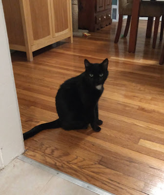 If you have a cat or cats in your life, you've undoubtedly noticed that sometimes a cat will sit with its tail wrapped against one side of its body. For example, here is a picture of my cat Eponine, at one year old, with her tail against the left side of her body: